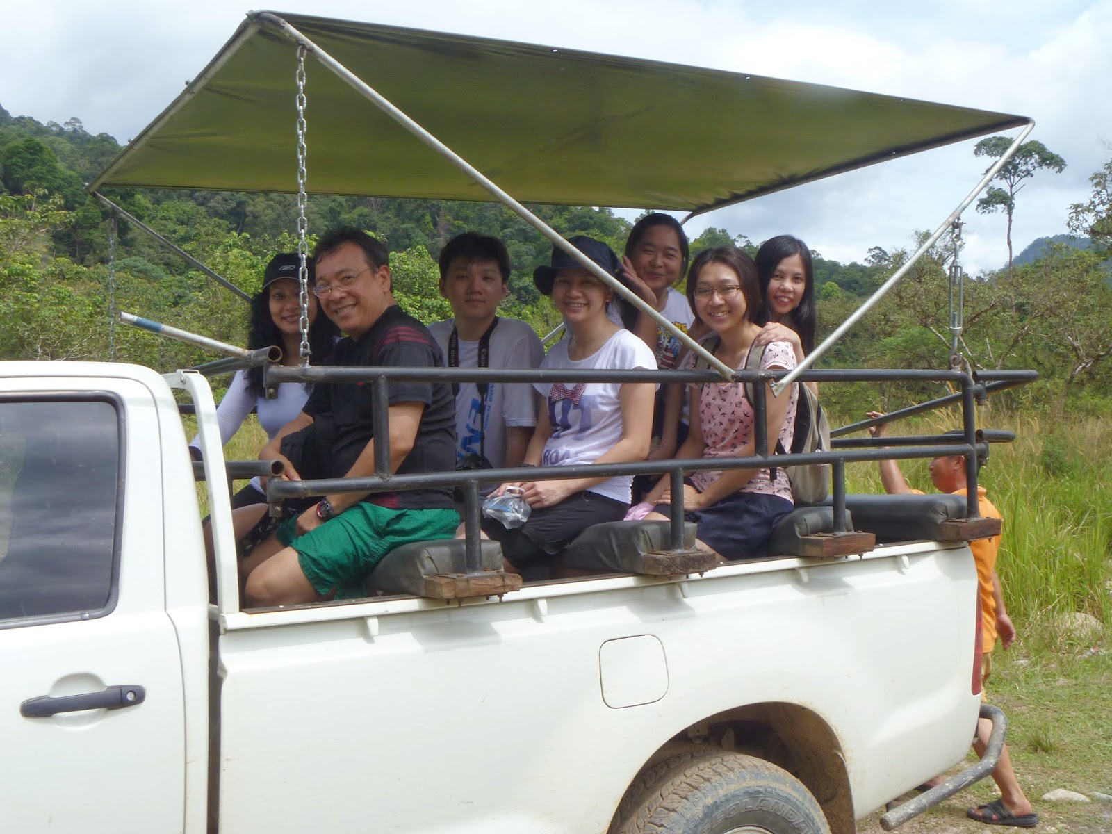要进彩虹瀑布,你得7早8早起床。6点半就得吃饱早餐准备出发,接着坐在摇摇晃晃的吉普车后方,一会是凹凸不平的石子路、一会是黄泥路、还得过河攀坡,总之就是一路颠簸到底,加上中途得闪避一些树枝,所以不想毁容,自然睡不得!